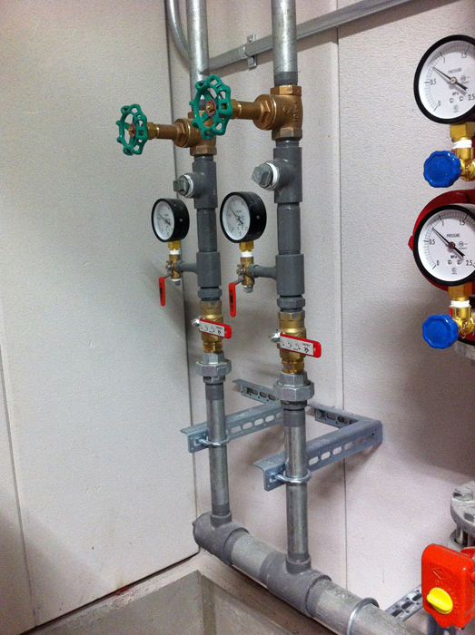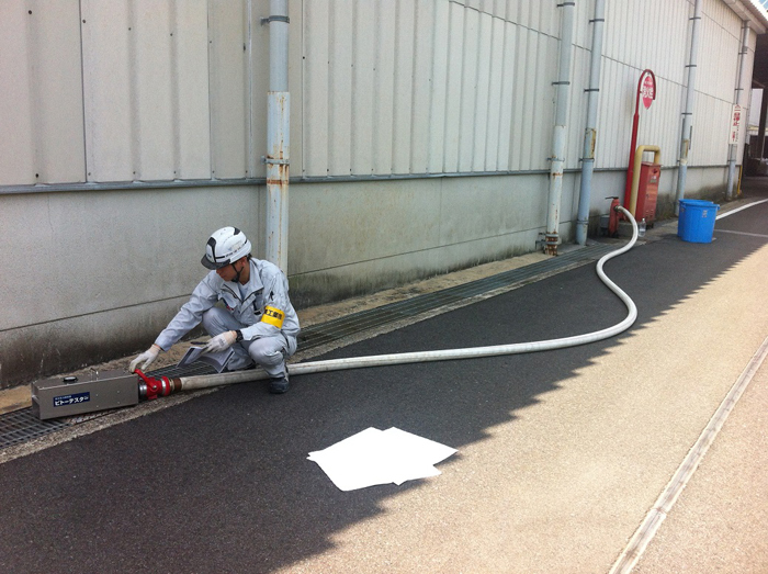 高層ビルなどの火災では、ハシゴ付消防自動車などによる外部からの注水では建物内部の消火活動に限界があり、 また、消防ポンプ自動車からホースを延長するのが難しいため、建物内部に配管設備と放水口を設けたものが連結送水管です。